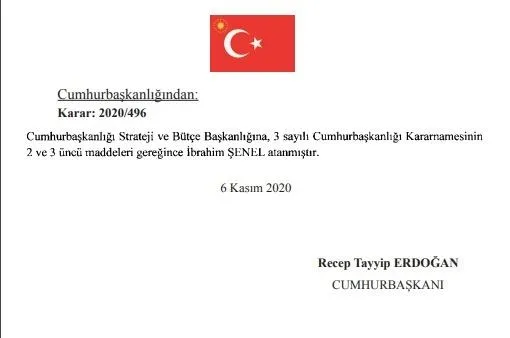 Cumhurbaşkanlığı Strateji ve Bütçe Başkanlığı'na İbrahim Şenel getirildi.