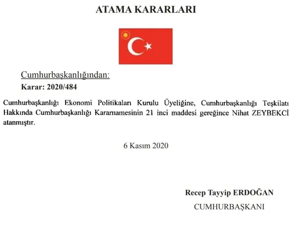 Öte yandan Cumhurbaşkanlığı Ekonomi Politikaları Kurulu Üyeliğine de Nihat Zeybekçi atandı.
