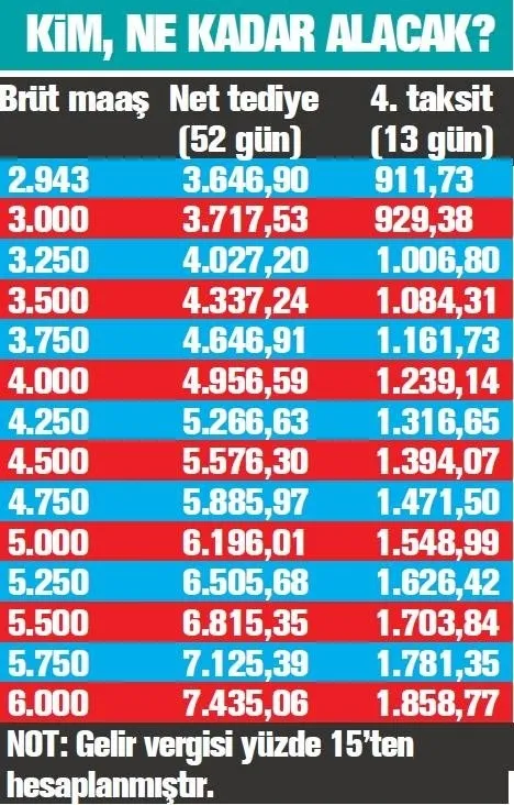 İşçiler bu yılın ilk yarısında 2 taksit halinde toplam 26 günlük ikramiye almıştı. Yılın ikinci yarısına ilişkin 26 günlük ikramiyenin ilk taksiti 27 Temmuz'da hesaplara yatırılmıştı.