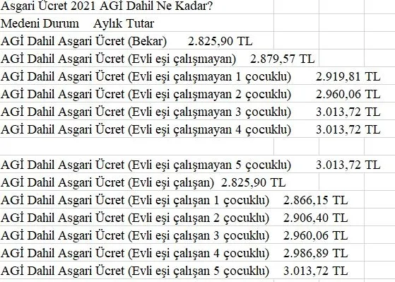ASGARİ ÜCRET 2021 AGİ DAHİL NE KADAR?