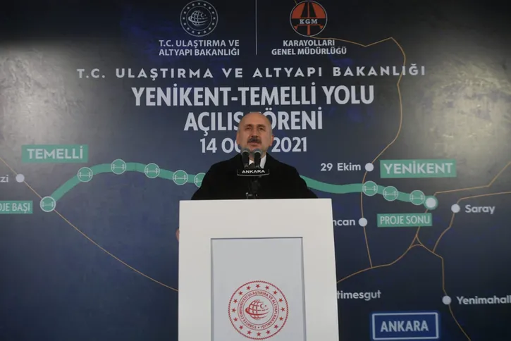 Başkentte, kuzeyde Anadolu Otoyolu'na, güneyde Ankara-Eskişehir Devlet yoluna bağlanan Yenikent-Temelli yolunun 29 kilometrelik kısmının açılış töreninde konuşan Karaismailoğlu, 2020'de yeni tip koronavirüs (Kovid-19) salgınına rağmen ülkeyi yarınlara taşıyacak çok büyük projelerin hayata geçtiğini aktardı.