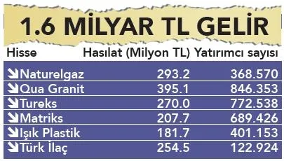 Bugün borsada işlem görmeye başlayacak olan Qua Granit'in halka arzı borsa tarihine geçti. Şirketin 24 milyon adetlik halka arzına 139.1 milyon adet talep geldi. Toplam 846 bin 353 yatırımcı sayısı ile tüm zamanların en yüksek katılımına ulaşıldı. Son 3 yılın en büyük halka arzında 395 milyon liralık hisse satışı yapıldı. Bu hafta içerisinde işlem görmeye başlayan Tureks'ın 22.5 milyon adetlik halka arzına 136.9 milyon adet talep geldi. Toplam 6.1 kat talep gelen halka arzda hisse satılan yatırımcı sayısı 772 bin 538 oldu. Matriks'in 7.4 milyon adetlik halka arzına gelen talep ise 65.1 milyon adet olarak gerçekleşti. Hisse alan yatırımcı sayısı ise 689 bin 426 oldu. Naturelgaz'ın 34.5 milyon adetlik halka arzına 1.8 milyar adet talep geldi. Hisse alan yatırımcı sayısı 268 bini geçti.