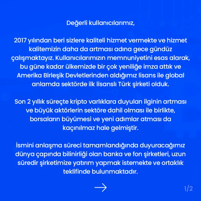 Bunun dışında Borsamızda genel bir sorun yaşanmamaktadır. Tüm işlemler güvenilir ve sorunsuz şekilde devam etmektedir. Kullanıcılarımızdan ve değerli basın mensuplarından, Borsamız aleyhinde olumsuz algı yaratmaya yönelik mesnetsiz ve maksatlı iddialara itibar etmemelerini önemle rica ederiz.