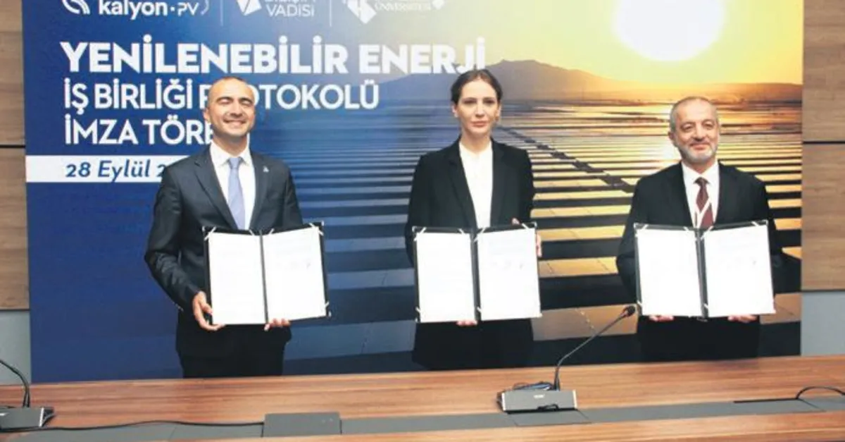 Kalyon PV, Bilişim Vadisi ile Hasan Kalyoncu Üniversitesi işbirliğinde hayata geçirilen "Yenilenebilir Enerji Kaynakları Sponsorluğu" kapsamında imza töreni ve "Yenilenebilir Enerji Çalıştayı" düzenlendi. Bilişim Vadisi'nde gerçekleştirilen programa Bilişim Vadisi Genel Müdürü Ahmet Serdar İbrahimcioğlu, Kalyon Holding Yönetim Kurulu Üyesi Kübra Kalyoncu Şeherli ve Hasan Kalyoncu Üniversitesi Rektörü Prof. Dr. Türkay Dereli katıldı. Çalıştayın açılış konuşmasını yapan Bilişim Vadisi Genel Müdürü Ahmet Serdar İbrahimcioğlu, "Kalyon PV, Bilişim Vadisi'nin nerdeyse harcadığı tüm enerjiyi yenilenebilir enerji kaynaklarından sağlaması amacıyla 2.619 güneş paneli armağan etti" dedi.