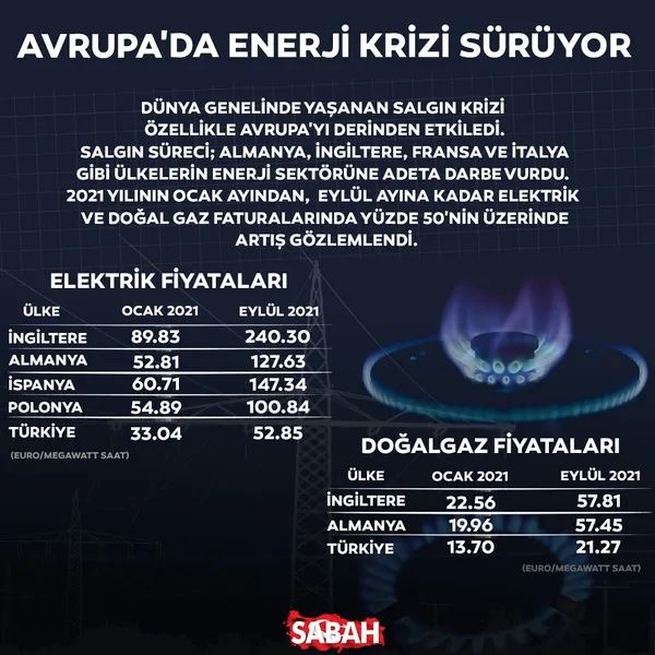 Öte yandan; İspanya, Fransa, Bulgaristan, Yunanistan ve Polonya'da da elektrik ve doğal gaz fiyatlarında ciddi bir artış yaşandı.