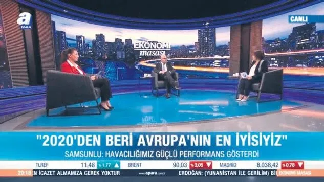 İGA CEO'su Kadri Samsunlu, A Para'da yayınlanan 'Ekonomi Masası' programında Dilek Güngör ve Özlem Doğaner'in sorularını yanıtladı. İstanbul Havalimanı'nın bu yılı 62-63 milyon yolcuyla kapatacağını belirten Samsunlu, "İç hatlar yolcu sayısında Sabiha Gökçen Havalimanı'nı geçtik. Pandemi öncesinde 2019'da Atatürk Havalimanı ve İstanbul Havalimanı'na 68.5 milyon yolcu gelmişti. 2023'te yolcu sayısında 70 milyonu geçeriz. Avrupa'da 2019 rakamlarına ulaşılması 2024'ü bulur" dedi.
