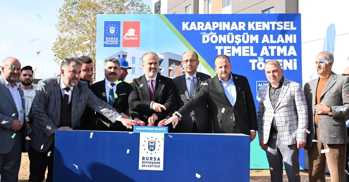 Karapınar Kentsel Dönüşüm Projesi'nin temel atma töreninde konuşan Bursa Büyükşehir Belediye Başkanı Alinur Aktaş, belediye iştiraki Burkent A.Ş. tarafından ihalesi 25 Eylül'de yapılan projeyi 2025 yılı ortasında bitirmeyi hedeflediklerini söyledi. Temelini attıkları 1. etap projesinin 90 konut ve 4 adet dükkândan oluştuğunu kaydeden Başkan Aktaş, "Ayrıca yılsonuna kadar diğer 3 bölümde de temel atma törenlerini gerçekleştireceğiz. Planlamaya aldığımız çalışmaları teker teker hayata geçirdiğimizde 2029 yılı sonuna kadar 10 bin civarı konutu kentsel dönüşümle şehrimize kazandırmış olacağız. 2019 yılında Bursa Şehir Tasavvurumuzu paylaşırken, "çınar ağaçlarının gölgesinde çocukların büyüdüğü bir Bursa" demiştik. Bu hedefimize adım adım ilerliyoruz" dedi.