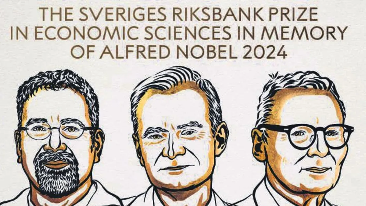 2024 Nobel Ekonomi Ödülü'nün sahibi Daron Acemoğlu, Simon Johnson ve James A. Robinson oldu. Bu üç isim ödüle, kurumların oluşumu ve refaha etkilerine ilişkin çalışmalarından dolayı layık görüldü. İsveç Kraliyet Bilimler Akademisi'nde düzenlenen basın toplantısında, Nobel Ekonomi Ödülü'nün kazananları açıklandı. Açıklamada, 2024 Nobel Ekonomi Ödülü'nü, kurumların oluşumu ve refaha etkilerine ilişkin çalışmalarından dolayı Türk Prof. Dr. Daron Acemoğlu, İngiliz Prof. Dr. Simon Johnson ve İngiliz Prof. Dr. James Robinson'un kazandığı bildirildi. 2023 Nobel Ekonomi Ödülü'nü, kadınların iş gücündeki yerine ilişkin çalışmalarından dolayı Harvard Üniversitesinde görevli Amerikalı Profesör Claudia Goldin kazanmıştı.