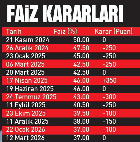 Türkiye Cumhuriyet Merkez Bankası (TCMB), Orta Doğu'daki savaşın gölgesinde yaptığı toplantıda politika faizini sabit tutma kararı aldı. TCMB Başkanı Fatih Karahan başkanlığında toplanan Para Politikası Kurulu (PPK) politika faizini yüzde 37'de sabit kalmasına karar verdi. Gecelik vadede borç verme faiz oranı yüzde 40'ta, gecelik vadede borçlanma faiz oranı ise yüzde 35.5'te sabit tutuldu.