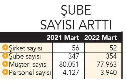 Finansal Kurumlar Birliği (FKB) ile Bankacılık Düzenleme ve Denetleme Kurumu'nun (BDDK) verilerine göre, sektörün 2021'in ilk çeyreğinde 41.8 milyar lira olan işlem hacmi, bu yılın aynı döneminde yüzde 66 artarak 69.5 milyar liraya ulaştı. Aktif büyüklüğünü yüzde 57 artırarak 72 milyar 227 milyon liraya çıkaran sektörün alacakları ise yüzde 60'lık artışla 67.2 milyar lira olarak gerçekleşti. Geçen yıl yüzde 34.4'lük artışla 200 milyar liraya ulaşan işlem hacminin, bu yıl 300 liraya ulaşması bekleniyor.