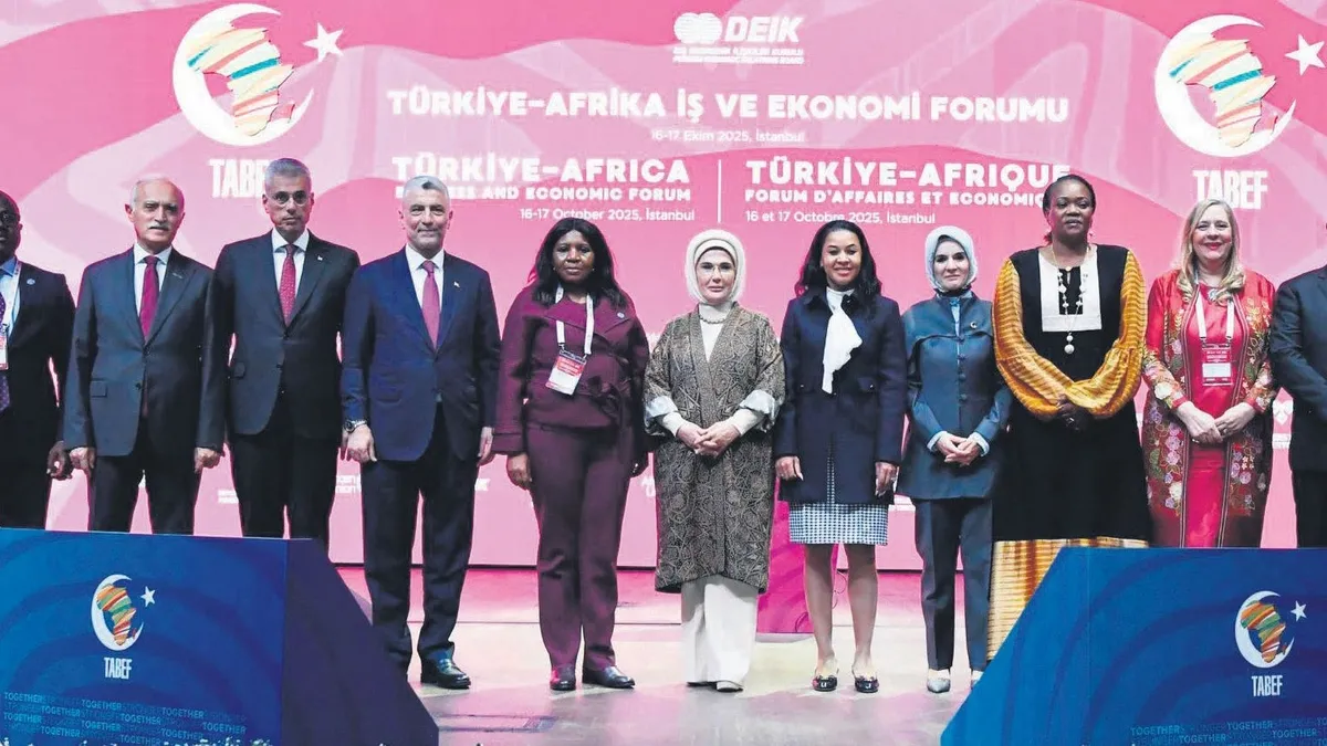 Ticaret Bakanlığı ev sahipliğinde, Afrika Birliği koordinasyonunda ve Dış Ekonomik İlişkiler Kurulu (DEİK) organizasyonuyla düzenlenen Türkiye-Afrika İş ve Ekonomi Forumu (TABEF), İstanbul Kongre Merkezi'nde kapılarını açtı. Foruma katılan Cumhurbaşkanı Recep Tayyip Erdoğan'ın eşi Emine Erdoğan, "Bugün küresel gündemde hâlâ savaş, soykırım, iklim değişikliği ve yoksulluk gibi başlıklar ilk sıralarda yer alıyor. Dünyanın artık gerçekten de yeni bir hikâyeye ihtiyacı var. Şahsen, bu hikâyenin kadınların kalemiyle yazılacağı kanaatindeyim. Her gün bir kadın, dünyanın bir köşesinde harika bir fikri gerçeğe dönüştürüyor. Bu fikirler, tıpkı karı yaran kardelenler gibi en zor şartlarda bile insanlığa umut aşılıyor" dedi.