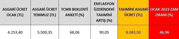 Bu ortalama ve Merkez Bankası'nın Kasım ayı Piyasa Katılımcıları Anketi sonuçlarına göre 2023 asgari ücret tahmini yapacak olursak;