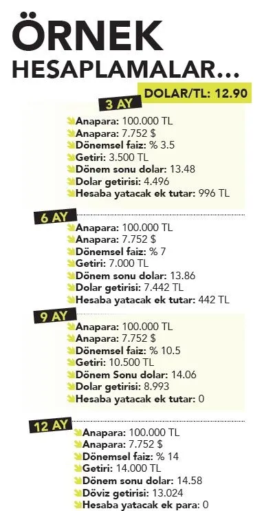 Vade sonundaki TL mevduat oranından fazla olması durumunda kur farkı müşterinin hesabına TL olarak yatırılacak.