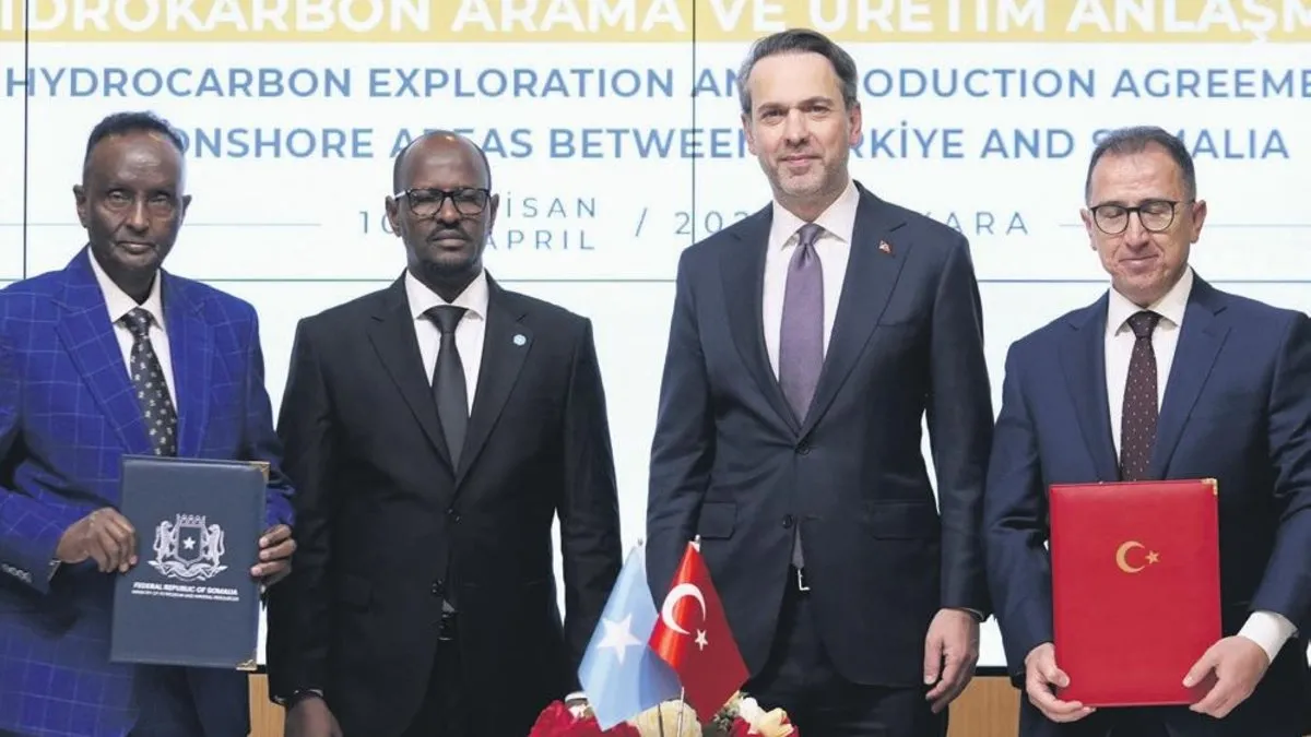 Türkiye Petrolleri Anonim Ortaklığı (TPAO) ile Somali Petrol Otoritesi arasında gerçekleştirilen "Somali Kara Alanlarında Hidrokarbon Arama ve Üretim Anlaşması" dün Ankara'da imzalandı. Tarihi imza törenine Enerji ve Tabii Kaynaklar Bakanı Alparslan Bayraktar ile Somali Petrol ve Maden Kaynakları Bakanı Dahir Shire Mohamed katıldı.