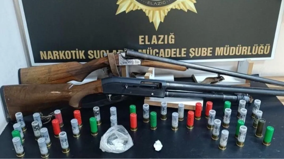 Elazığ Cumhuriyet Başsavcılığı koordinesinde İl Emniyet Müdürlüğü Narkotik Suçlarla Mücadele Şube Müdürlüğü tarafından uyuşturucu ile mücadele kapsamında, sokak satıcılarına yönelik yapılan çalışmalarda 3 şüphelinin üst ve ikamet aramasında 1 ruhsatsız tabanca, 6 fişek, 2 tüfek ve 40 kartuş, 26,26 gram metamfetamin, 89 sentetik ecza ve bir miktar Esrar ele geçirildi. Gözaltına alınan şüphelilerden ikisine uyuşturucu madde kullanmak suçundan işlem yapılırken 1 şüpheli sevk edildiği mahkemece tutuklandı.