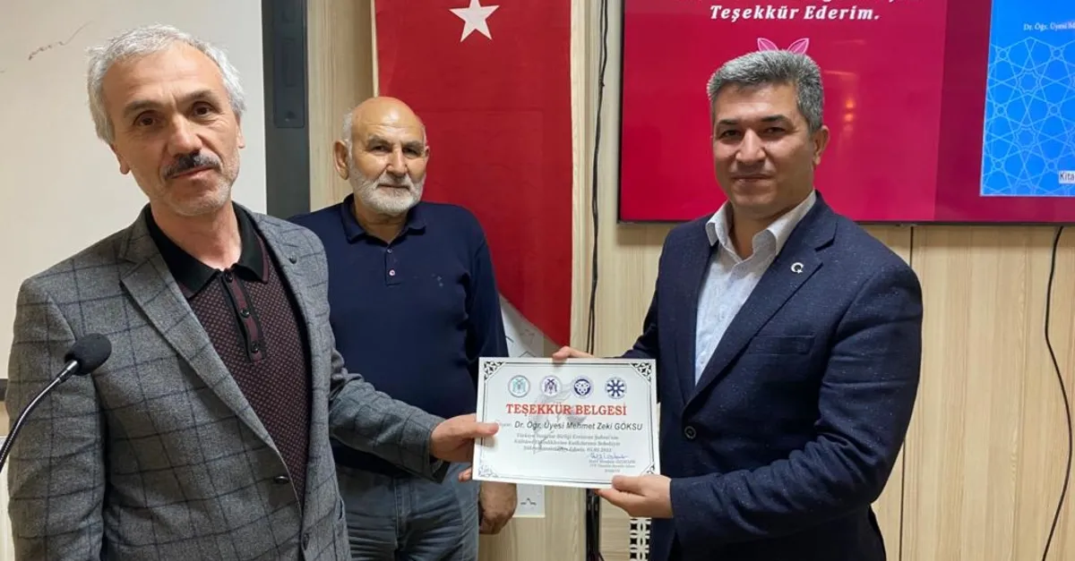 Çok sayıda insanın takip ettiği program sonrasında Türkiye Yazarlar Birliği Erzincan Şubesi tarafından hazırlanan teşekkür belgesini Şube Başkanı Halil İbrahim Özdemir ile birlikte Dr. Kürşat Yılmaz, Mehmet Zeki Göksu'ya takdim etti.