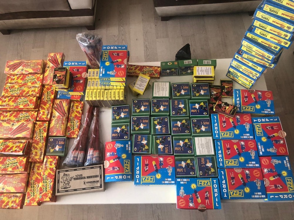 Erzurum’da polis ekipleri tarafından toptancılarda yapılan aramalarda 16 kutu 640 adet Feza ibareli torpil, 194 kutu 7 bin 640 adet çeşitli markalarda torpil adı verilen patlayıcı madde ele geçirildi.Alınan bilgilere göre, Yakutiye ilçesine bağlı Ali Paşa Mahallesi’nde istihbarat üzerine polis ekipleri tarafından toptancılarda yapılan aramada 16 kutu 640 adet Feza ibareli torpil, 194 kutu 7 bin 640 adet çeşitli markalarda torpil adı verilen patlayıcı madde ele geçirildi.Olayla ilgili K.T. ve O.K. isimle şahıslar gözaltına alınarak