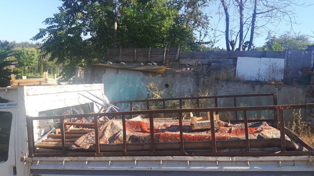 Dede Mahallesi Hacıbekir Sokağı’nda plakaları sökülmüş bulunan kalıplar, inşaatın sorumlusuna teslim edildi.