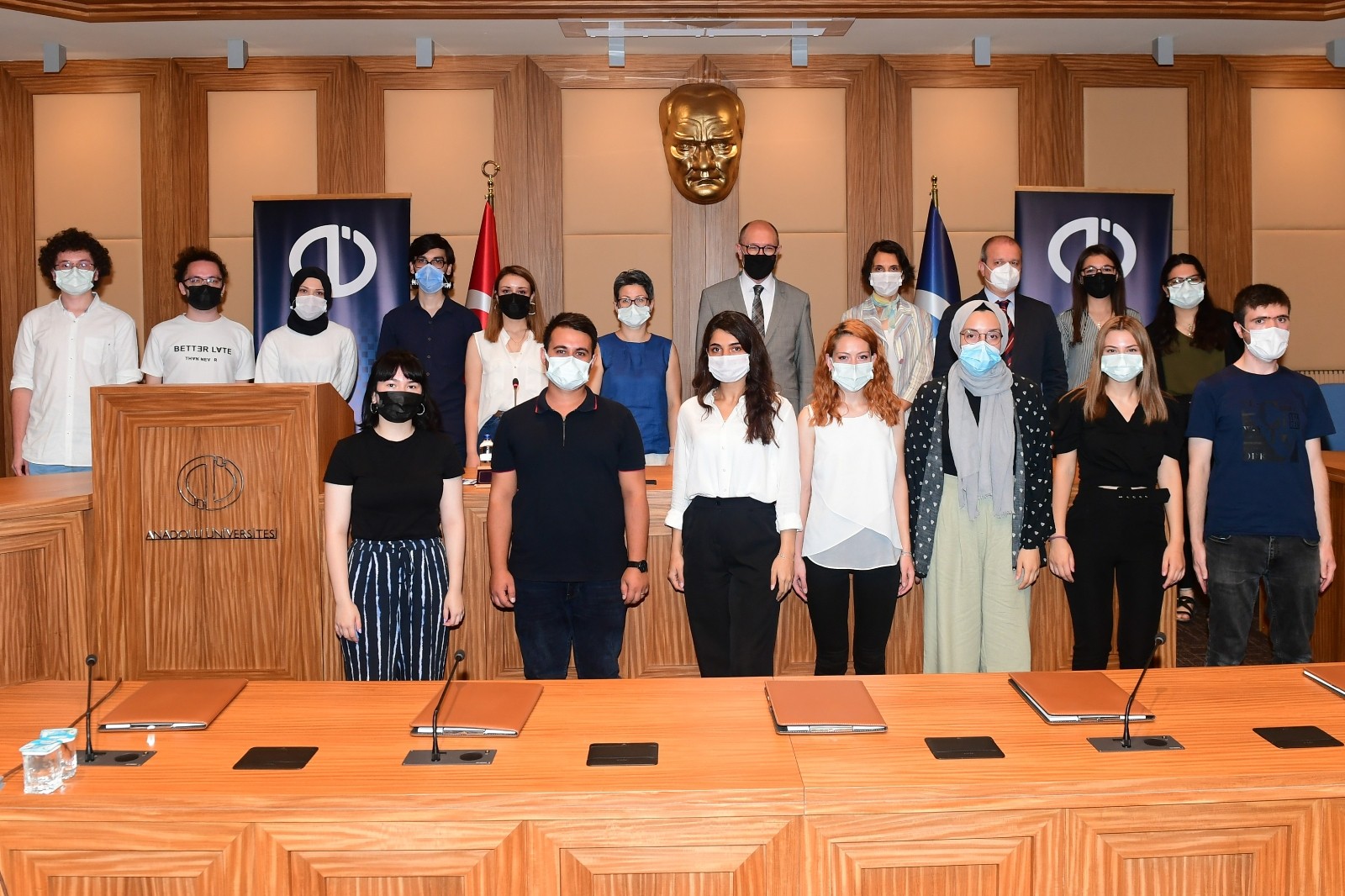 Cumhurbaşkanlığı İnsan Kaynakları Ofisi koordinasyonunda yürütülen “Kamu Kurumlarında Staj Seferbirliği” projesiyle Anadolu Üniversitesi’nde staja başlayan öğrenciler, Anadolu Üniversitesi Rektörü Prof. Dr. Fuat Erdal ve Anadolu Üniversitesi Kariyer Merkezi Müdürü Doç. Dr. Seda Tekeli ile bir araya geldi.Kamu Kurumlarında Staj Seferbirliği projesi kapsamında yurdun çeşitli üniversitelerinde okuyan öğrenciler için Anadolu Üniversitesi 7 ayrı birimiyle kapılarını stajyer öğrencilere açtı. Stajyer öğrenci kabul eden birimler ise şunlar oldu, “Kurumsal İletişim Koordinatörlüğü, Sosyal Medya ve Dijital Güvenlik Eğitim Uygulama ve Araştırma Merkezi, Psikolojik...