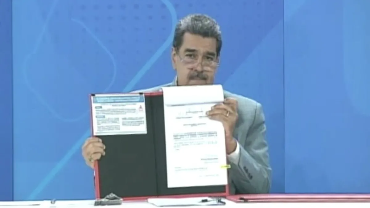 Venezuela Devlet Başkanı Nicolas Maduro, ülkesiyle Türkiye arasında 21 Temmuz 2023'te İstanbul'da imzalanan Yatırımların Karşılıklı Teşviki ve Korunması Anlaşması'nın Venezuela'daki onay sürecinin tamamlandığına ilişkin belgeyi "canlı yayında" imzaladı.