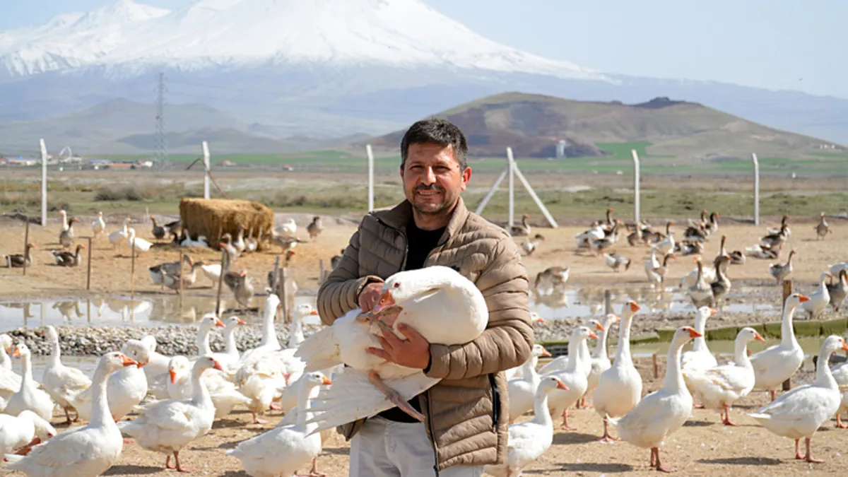 Tarım İl Müdürlüğü'nden hibe alan 41 yaşındaki çiftçi 15 kaz ile başladığı işte şimdi bir çiftlik sahibi oldu.