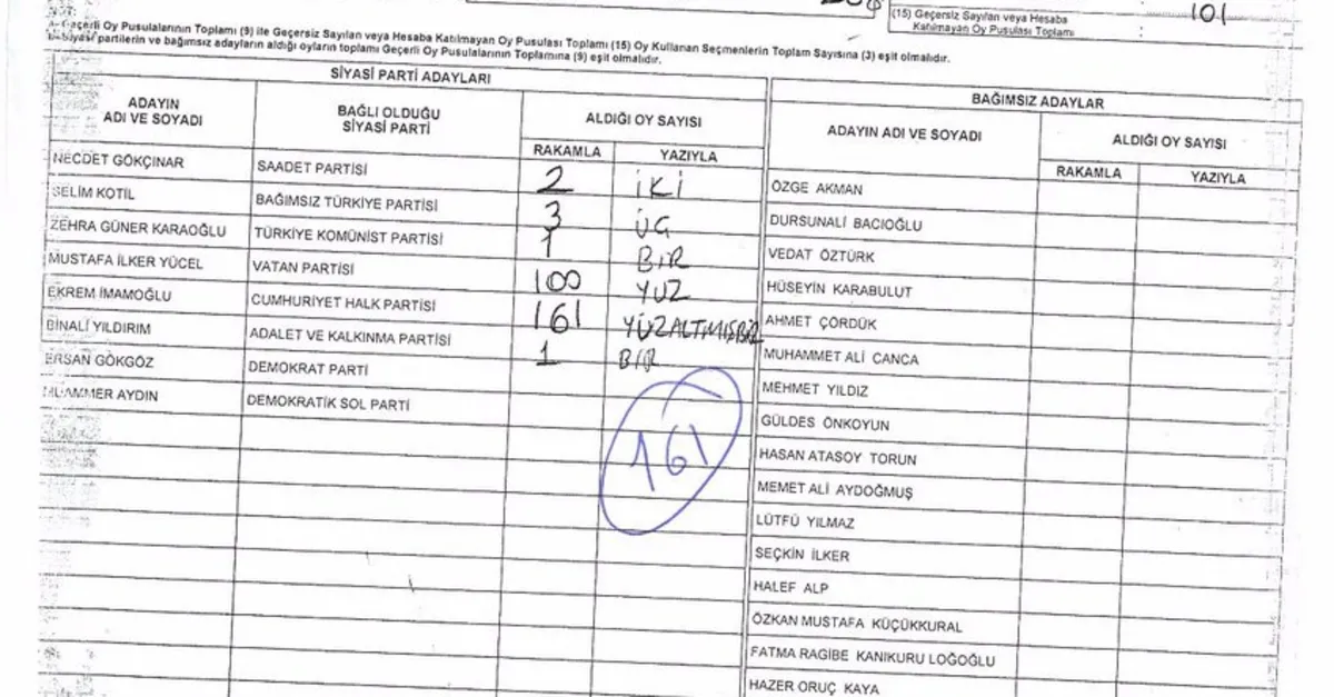 BEŞ SANDIKTA BİN 121 OY EKREM İMAMOĞLU'NA FAZLADAN YAZILDI