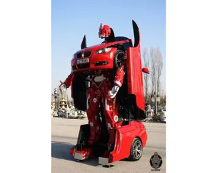 Rusya'da bir araba fuarında kaydedilen görüntülerde arabanın dik durarak robot şeklini alması hayret ettirdi.