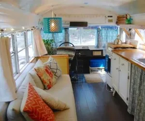Kiranın yükselmesi üzerine eski bir okul otobüsünü kendi evlerine dönüştürmeyi seçen çift, ilk olarak otobüs içinde ev konforunu aratmayacak bir yapı tasarlamaya başladı.