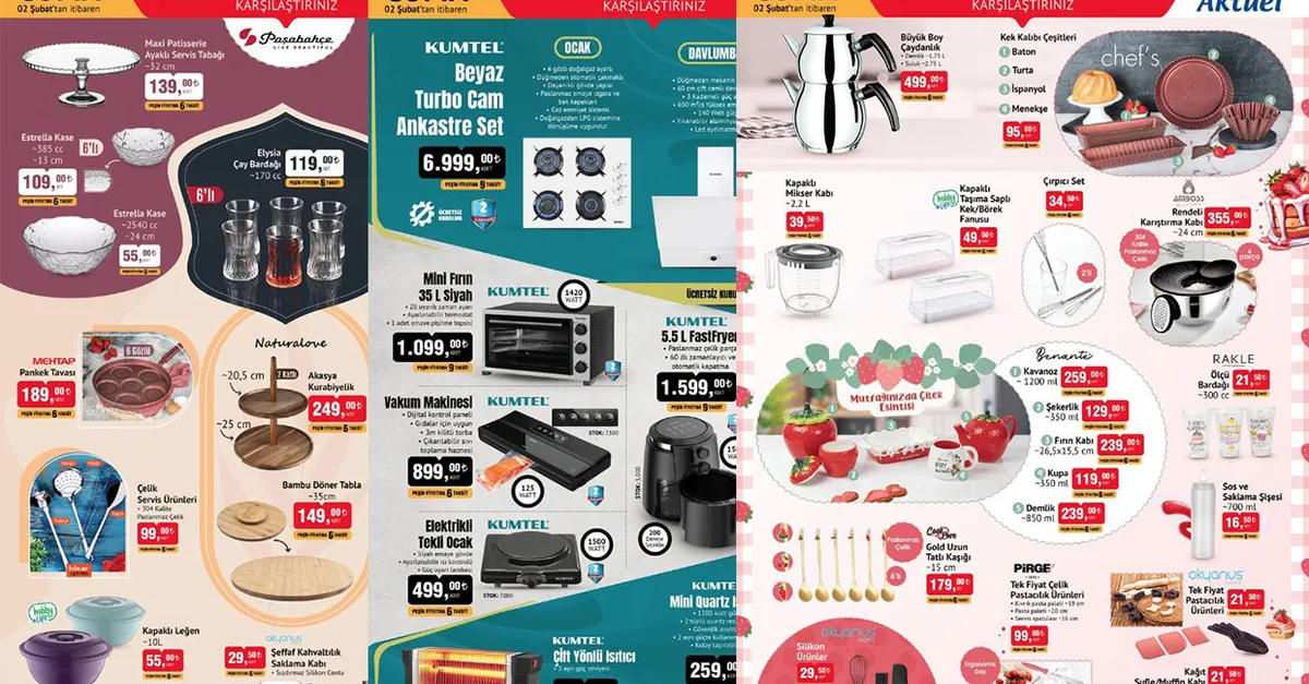 BİM aktüel ürünler kataloğu 30 Ocak - 2 Şubat indirimleri geliyor. Küçük ev aletlerindeki fırsatların yanı sıra kek kalıbı, mikser kabı, çay ve su bardağı seti gibi mutfak ürünleri de dikkat çekenler arasında. Öte yandan kış aylarının vazgeçilmezi elektrikli ısıtıcılar da bu hafta gündemde. İşte, BİM katalog indirimli tam liste...
