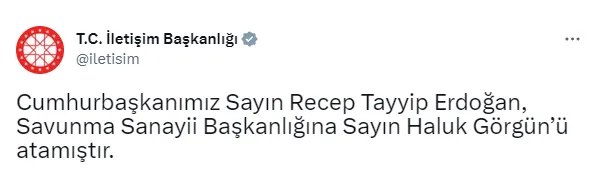 Cumhurbaşkanı Recep Tayyip Erdoğan, Türk savunma sanayisine yön veren kurumun yeni başkanı olarak Haluk Görgün'ü görevlendirdi.