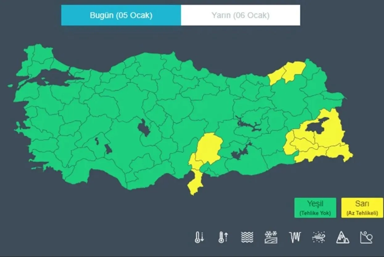 Meteoroloji Genel Müdürlüğü tarafından 11 il için sarı kodlu uyarı yapıldı. 11 kentte gök gürültülü sağanak ve kar yağışı bekleniyor. Yetkililer, ani sel, su baskını, yıldırım, yerel dolu yağışı, yağış anında kuvvetli rüzgar, hortum ve ulaşımda aksamalar gibi olumsuzluklara karşı vatandaşları uyardı.