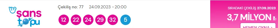 Şans Topu 24 Eylül itibariyle 2 Milyon 359 bin 795 TL'dir.