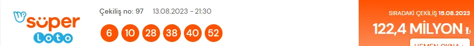 13 Ağustos Süper Loto sonuçları sorgulama sayfası ve tüm detaylar şöyle;