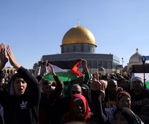 Cuma namazı sonrası Kudüs'te toplanan binlerce kişi Trump'ın kararına tepki gösterisinde bulundu.