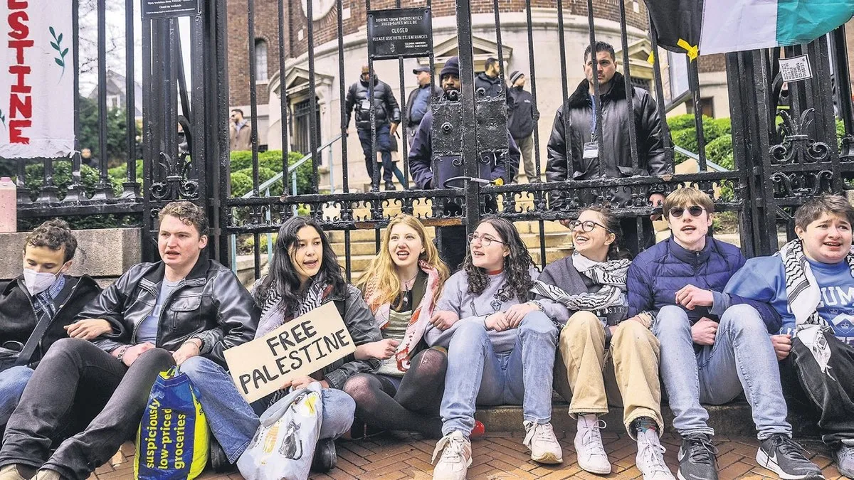 ABD'nin New York kentindeki Columbia Üniversitesi'nde bir grup öğrenci, Filistin'e destek gösterilerine öncülük ettiği gerekçesiyle gözaltına alınan Filistinli aktivist Mahmud Halil'in serbest bırakılması için kendilerini okul kampüsünün giriş kapısına zincirledi.