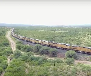 ABD sınırlarını baştan başa geçen ilk demiryolu ağını yapan şirketlerden biri olan Union Pacific'e ait en az 300 lokomotif ve vagonu bulunan tren drone ile görüntülendi.