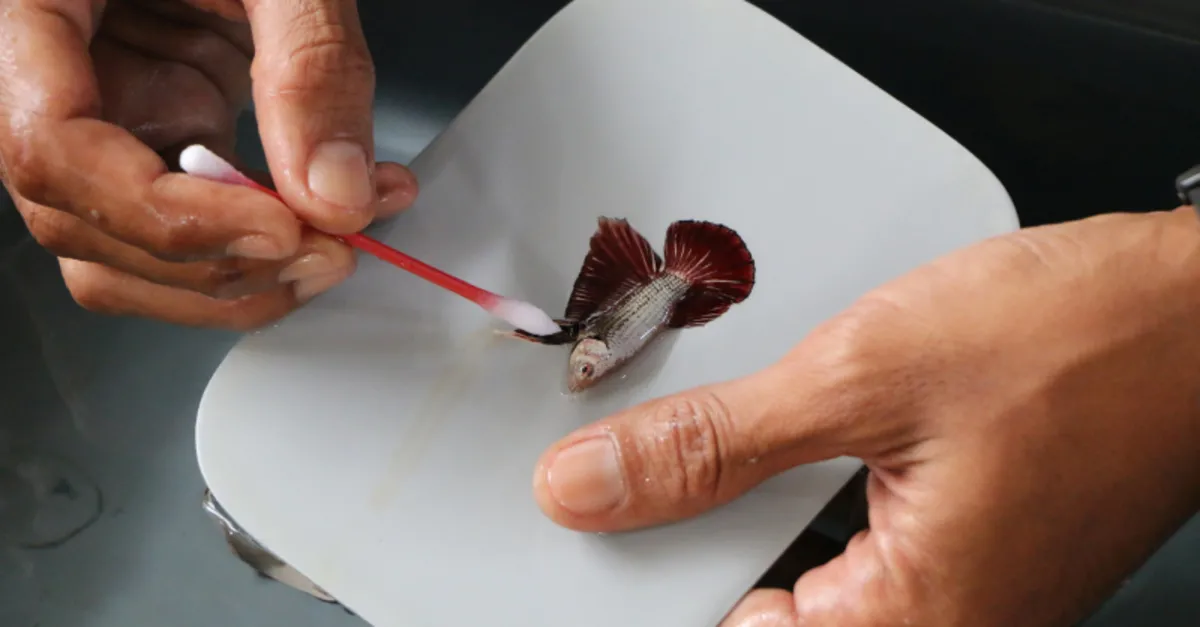 Firmansyah, "Belirli büyüklüğe ulaşmış balıklara bu işlemleri yapıyorum. Yaşlı ve çok küçük balıkları kabul etmiyoruz. Cilt hastalığı olan balıkları da tedavi ediyorum. Zarar görmüş deriyi aldıktan sonra balığı, içinde tuz, Melafix adlı ilaç ve Hint Bademi ağacının yaprağının olduğu su içinde bekletiyorum." ifadesini kullandı.