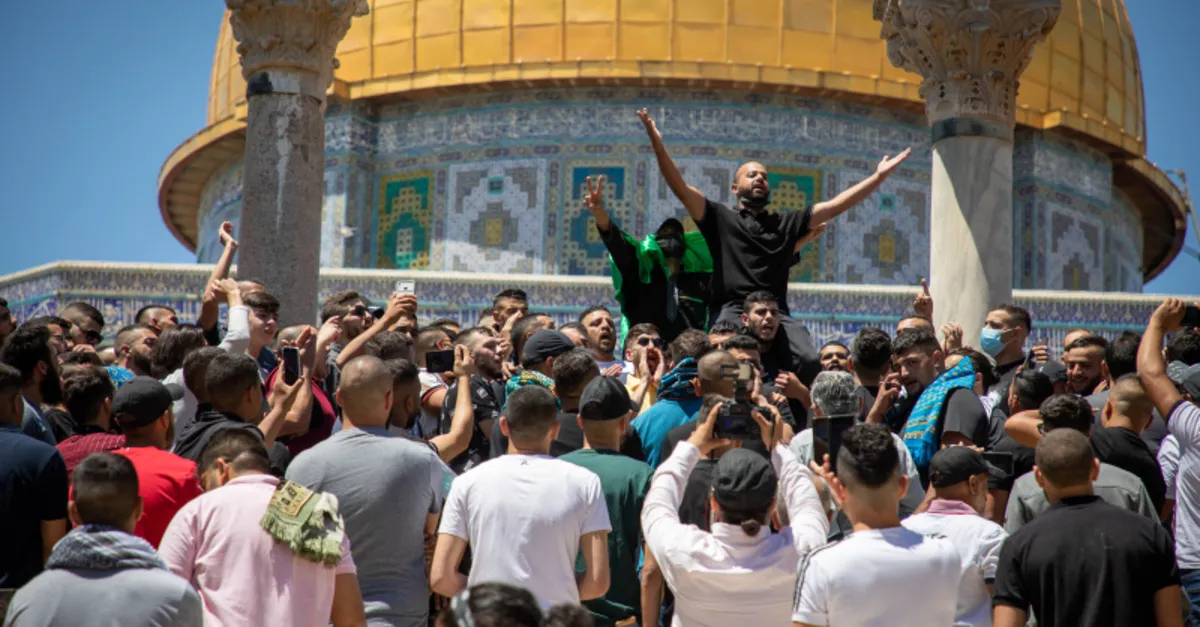 Filistinliler, Harem-i Şerif'te kılınan cuma namazı sonrası, Mescid-i Aksa'daki Kıble Mescidi ile Kubbetu's Sahra arasındaki revakların altında abluka altındaki Gazze Şeridi'ne destek gösterisi düzenledi.