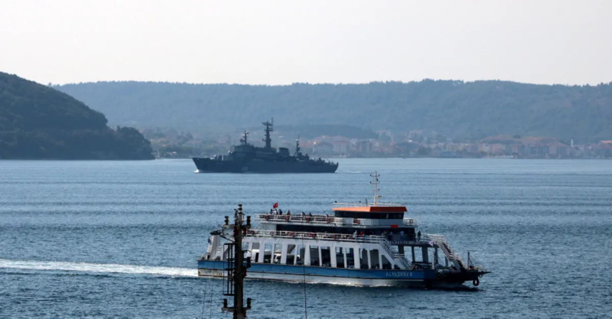 Kilitbahir köyü dağında bulunan 'Dur Yolcu' yazısı ile Kilitbahir Kalesi önünden geçen Rus savaş gemisinin boğaz geçişine, güvenlik nedeniyle Türk Sahil Güvenlik botu da eşlik etti.