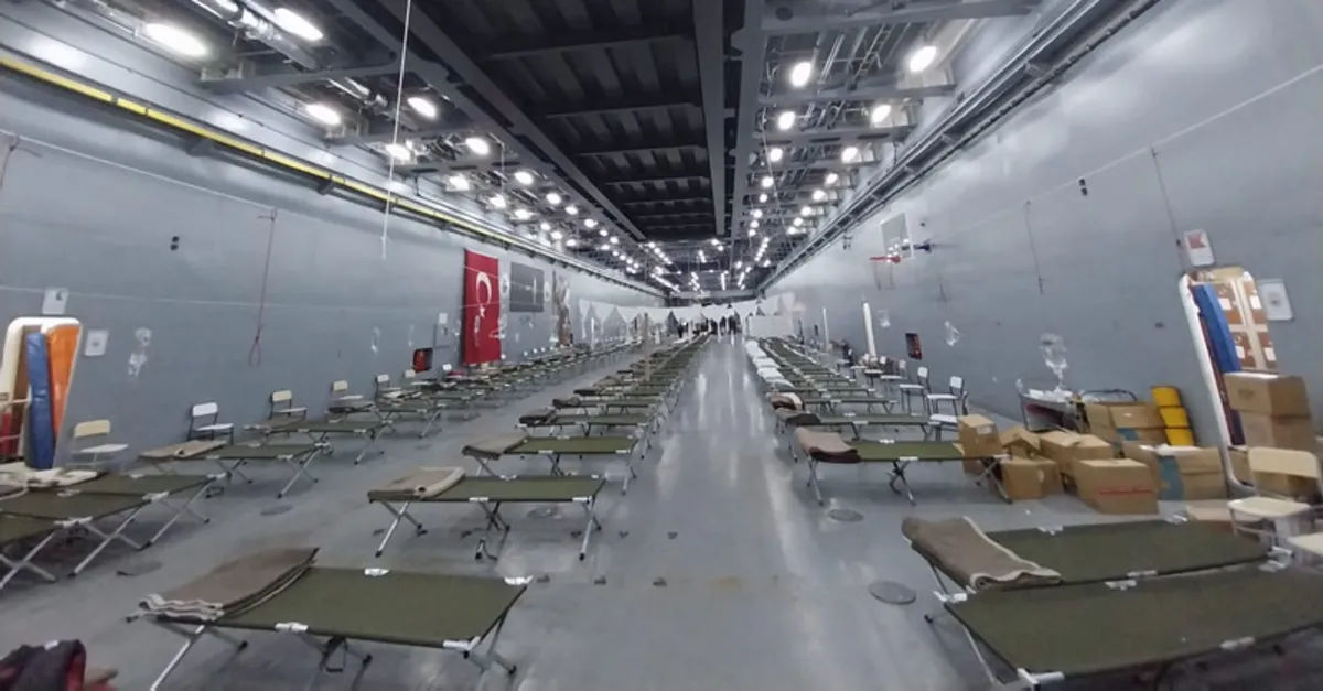 Çarşamba sabah 05:00 sularında Payas limanına yanaşan gemilerden iş makinaları ve kamyonlar indirildi; boşalan alan hemen acil servise dönüştürüldü ve bölgeden ulaştırılan depremzede, yaralı ve hastalara hizmet vermeye başladı. Gemilerin her ikisinde de helikopterlerin inebileceği pistler de bulunuyor.