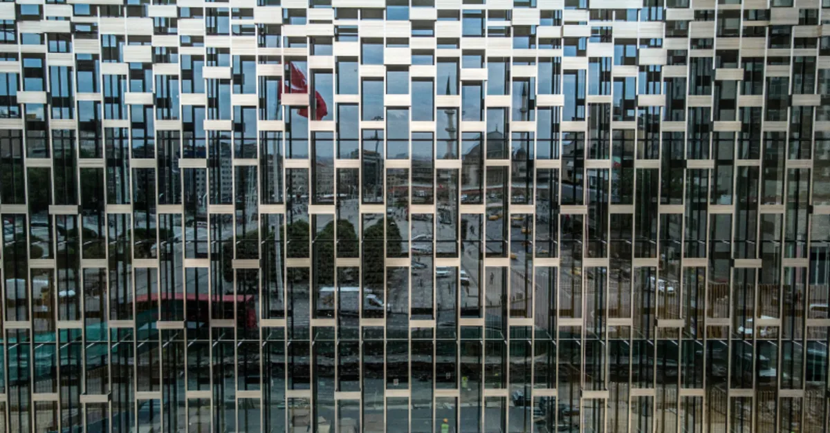 Atatürk Kültür Merkezi'nin (AKM) inşaatında sona gelindi. Ön cephesi tamamlanan yeni AKM, drone ile havadan görüntülendi. 29 Ekim'de açılışı planlanan kültür merkezi inşaatında 3 kule vincinden birinin çalışmaya devam ettiği görüldü.