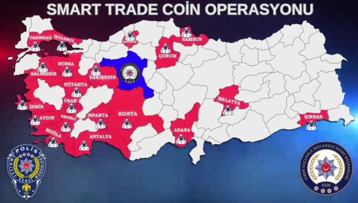 Ankara İl Emniyet Müdürlüğü Siber Suçlarla Mücadele Şube Müdürlüğü, Ankara merkezli 21 ilde, 'Smart Trade Coin' adlı sahte kripto varlık alım/satım platformu üzerinden dolandırıcılık yaptığı belirlenen organize suç örgütüne yönelik geniş çaplı bir operasyon gerçekleştirdi.