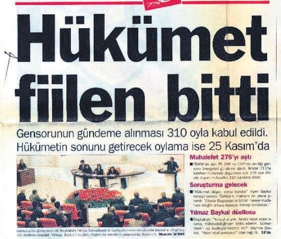 Hükümetsiz geçen 7 aydan sonra Erbakan ile Çiller dönüşümlü başbakanlıkta anlaşınca REFAHYOL Hükümeti kuruldu. Dönemin ana akım medyası bu hükümetten hiç memnun değildi. Medya ve İstanbul sermayesi işbirliği ile zaten müdahale etmeye hazır askerler sürekli kışkırtıldı. Tarihe 28 Şubat kararları olarak geçen bir MGK metni, seçilmiş iktidara dayatılmak istenir. Necmettin Erbakan Hükümeti'nin istifa etmesinden başka bir çıkış yolu kalmamıştı. Toplumda büyük bir umut olman Refahyol Hükümeti'nin ömrü sadece 1 yıl oldu.