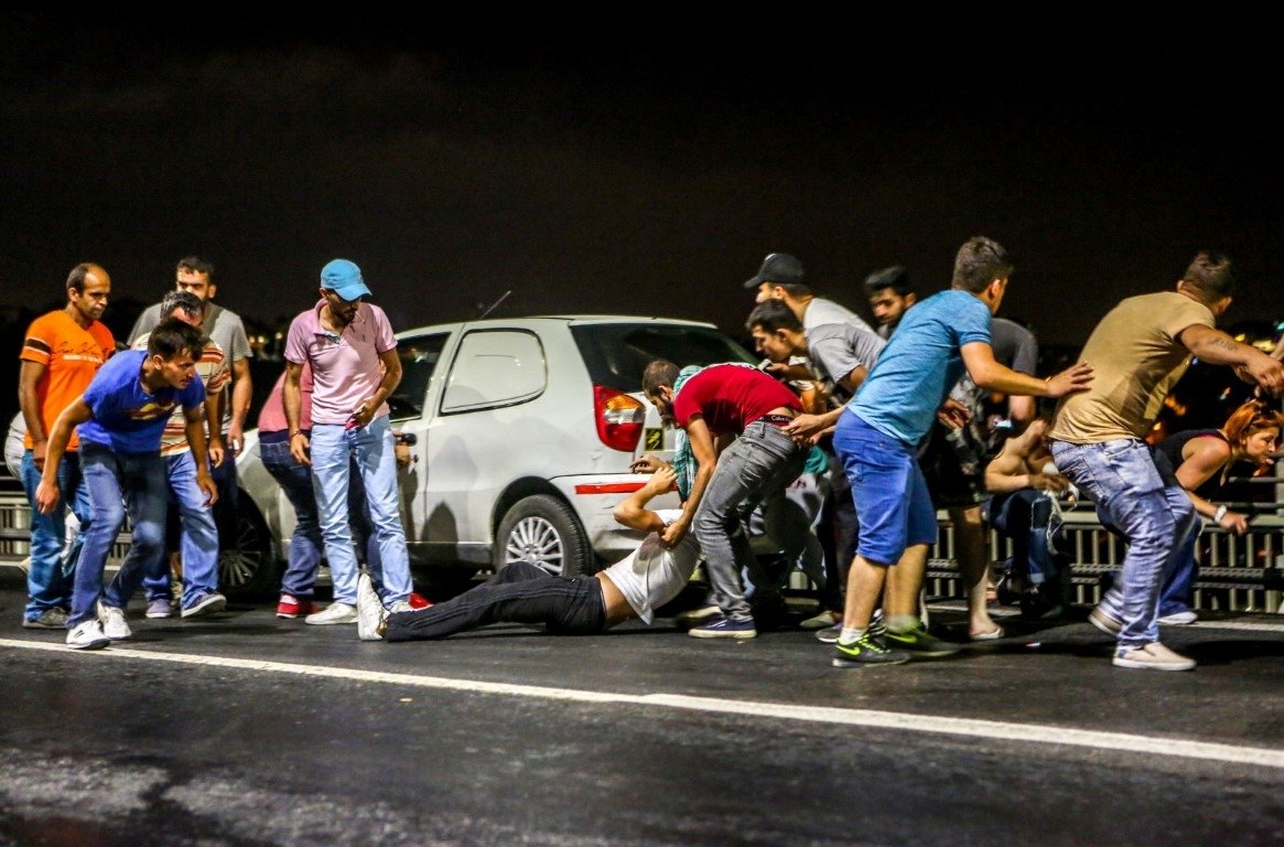 Saat gece 12 sularında 3 Land araç kışladan çıkış yaptı. Ancak beklenmedik bir duvarla karşılaştılar. Cumhurbaşkanı Recep Tayyip Erdoğan'ın çağrısı üzerine darbecilere direnmek için yollara çıkan vatandaşlar ile polisler darbecilerin yolunu kapatmıştı. Onlardan biri de seramik ustası Servet Asmaz'dı. 4 çocuk babası Servet Asmaz (44), Cumhurbaşkanı Erdoğan'ın çağrısı üzerine Boğaziçi Köprüsü'ne gitmek için yola koyuldu. Ardından TEM Otoyolu'ndaki kalabalığın içerisine girdi.
