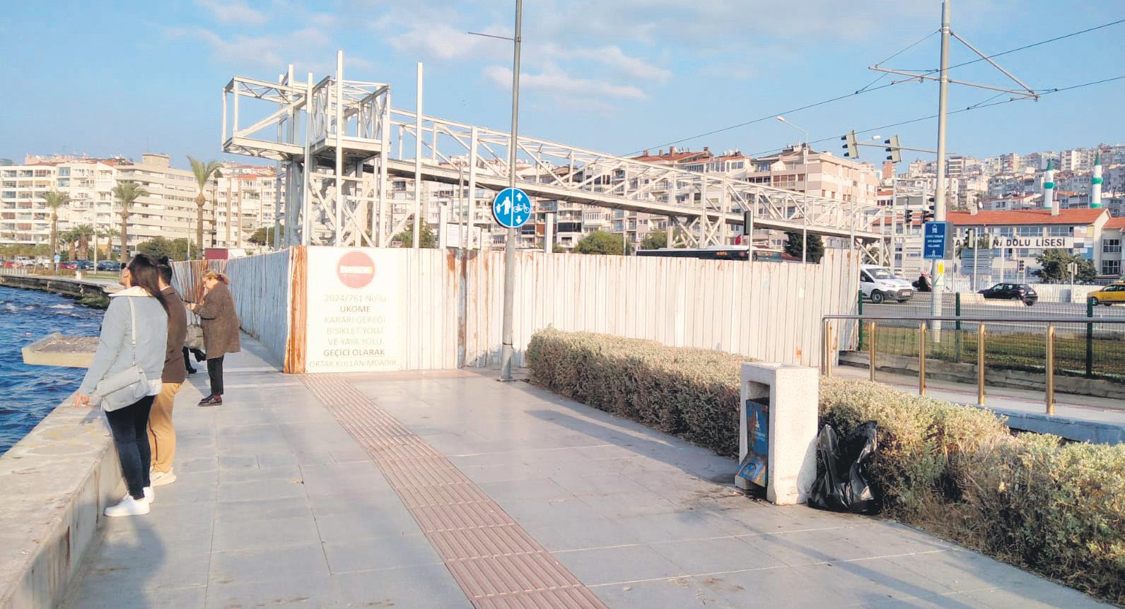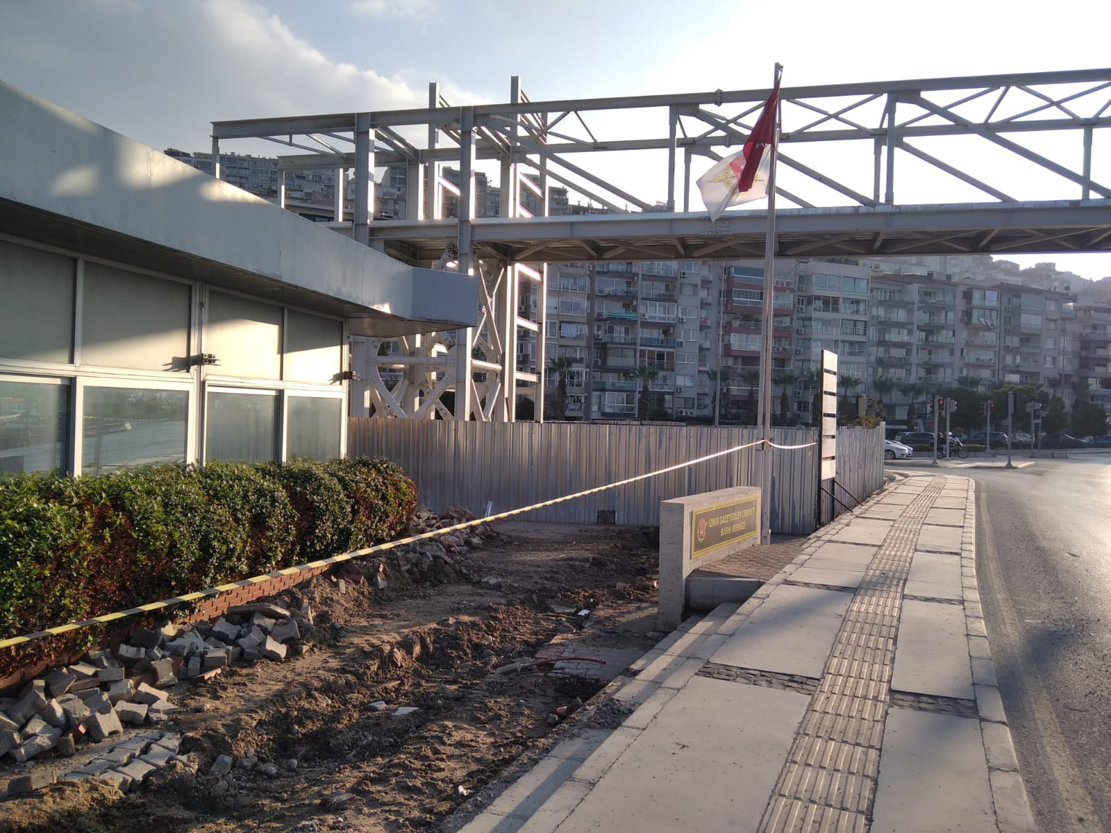 İzmir Büyükşehir Belediyesi, yazılı ve görsel basın yayın organlarına geçtiğimiz eylül ayında geçtiği bültende yaya üst geçidindeki çalışmaların hızlandığını belirtip 2024 yılı kasım ayında devreye alınacağını duyursa da aradan geçen 60 günlük süre de yaya üst geçidinin tamamlanması için yeterli olmadı.