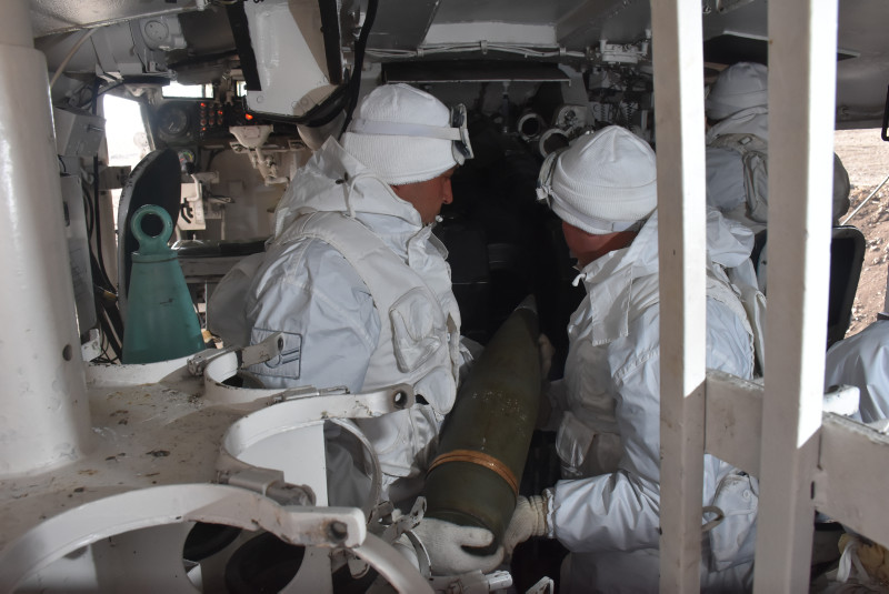 Hava sıcaklığının sıfırın altında 10 dereceye kadar düştüğü bölgede 1758 personelin katılımıyla devam eden tatbikatta, 43 değişik cinsteki 651 araç, 23 değişik cins ve çapta 865 silah kullanılıyor.