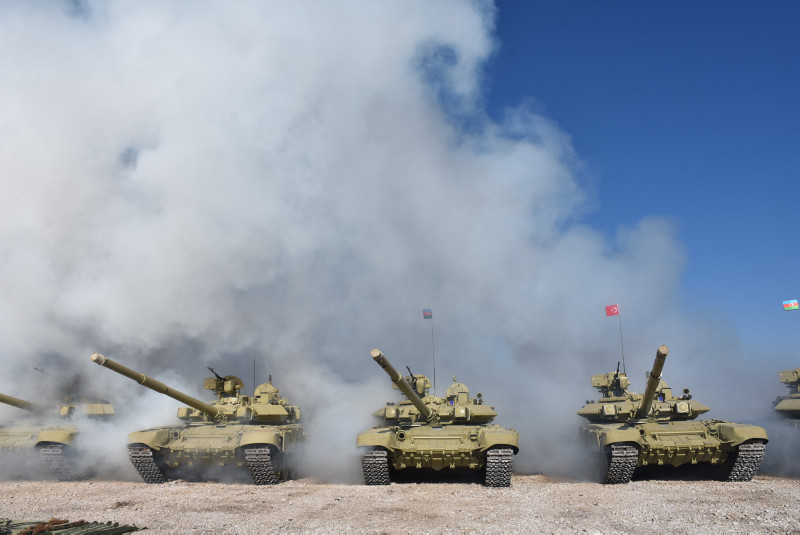 Tatbikat kapsamında Türkiye ve Azerbaycan silahlı kuvvetlerine ait zırhlı birlikler, ilk olarak tankların manevra öncesi bakım ve kontrolünü yaptı.