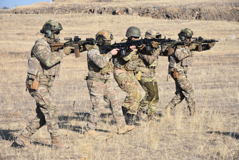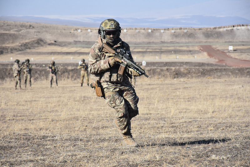 Kahraman Türk komandosu, Kış Tatbikatı-2023 çerçevesinde gerçekleştirilen faaliyetleri başarıyla icra etmeye devam ediyor. Zorlu şartlar altında görevlerini başarıyla icra eden Türk komandosu, bu sefer de hünerlerini Kış Tatbikatı-2023'te gösteriyor. Milli Savunma Bakanlığı (MSB) ise tatbikat çerçevesinde komandolara ait görüntüleri sosyal medya hesabından paylaştı. MSB tarafından yapılan paylaşımda, "Korku nedir bilmeyiz, biz dağların erleri. Yuva yaptık göklere, baş döndüren yerlere. Komandolarımız hazır, daima hazır. Kış Tatbikatı-2023 başarıyla devam ediyor" ifadelerine yer verildi.