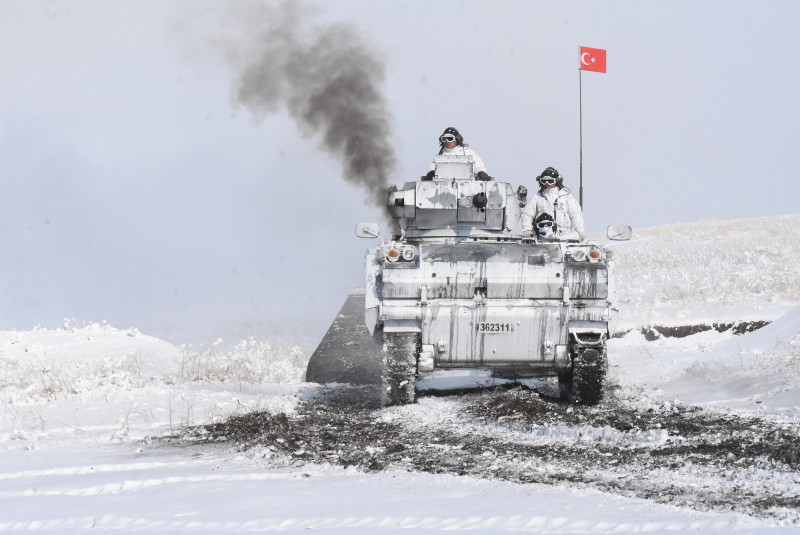 Türk Silahlı Kuvvetlerinin (TSK) düzenlediği Cumhuriyet tarihinin en geniş katılımlı "Kış Tatbikatı-2023" Kars'ta devam ediyor.