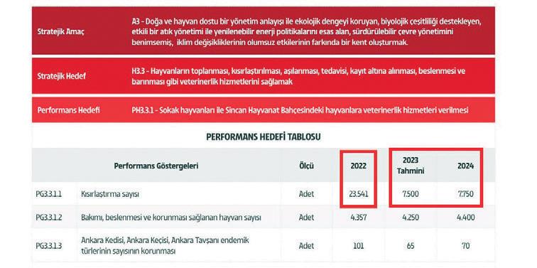 Ankara Büyükşehir Belediyesi, 2022'de 23 bin sokak köpeğine kısırlaştırma işlemi yaparken, bu rakamın 2023'te 7 bin 500'e düştüğü, 2024'te kısırlaştırma hedefinin de 7 bin 750 olduğu kaydedildi.